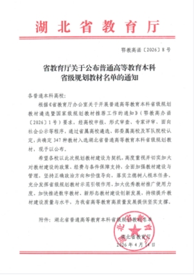 喜报! 我校6部教材入选湖北省普通高等教育本科省级规划教材!