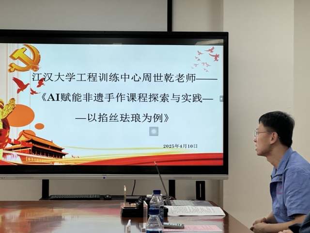 理论学习结束后,由江汉大学工程训练中心周世乾老师分享《AI赋能非遗手作课程探索与实践—以掐丝珐琅为例》,华中科技大学工程实践创新中心蔡新梅老师分享《基于AI赋能工程训练教学的探索与实践》,交流了AI在工程实践教育领域的业务党课经验。
