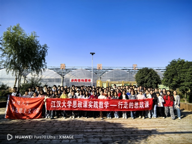 2025年10月23日下午,江汉大学马克思主义学院中国特色社会主义理论体系教研部带领全校180余名本科生代表走出教室“小课堂”,走进社会“大课堂”,开展思政课社会实践教学。本次实践教学聚焦“绿水青山就是金山银山”的理念,前往我校结对共建的湖北省“理论热点面对面”实践基地——东西湖区柏泉街。