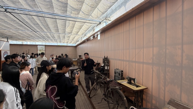 自勇合作社是以“多肉植物、移民文化、农耕文化”为主体的实践教学基地。这里,不只是一片苗圃,更是一个精神的坐标。在讲解员的指引下,师生们见证了一段为国奉献、重建家园的感人篇章。为支持国家南水北调工程,园艺社负责人“舍小家为大家”,带领移民乡亲们在这片新的土地上,用双手播种希望、用汗水浇灌未来。在园艺社内,每一株苗木的生长,每一块瓜果的成熟,都生动诠释了“劳动精神”与“家国情怀”的深刻内涵。在农具展览处,每一件斑驳生锈的农具,都记录着丹江口移民的筚路蓝缕,印证着“幸福是奋斗出来的”朴素真理。