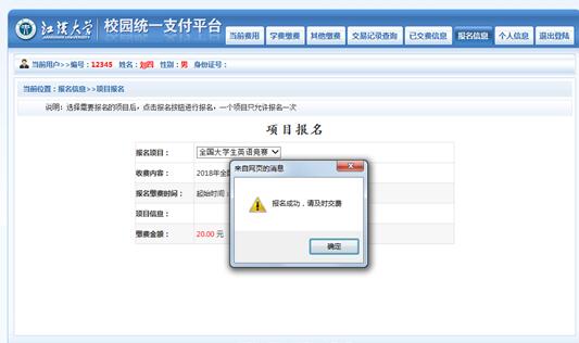 2、报名费按2018年全国大学生英语竞赛(NECCS)通知精神,每生报名费为20元。缴费方式为网上统一支付平台缴费(见附件),缴费时间截止日期:3月12日。