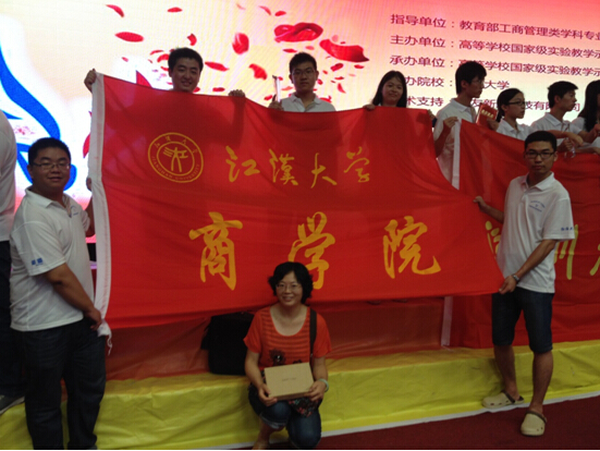 此次比赛中,我校商学院代表队队员刘佳(CEO)、牛龙飞(市场总监)、陈雨晴(财务总监)、张青(采购总监)、吴凡(生产总监)在学院指导老师邓红珍老师的带领下,紧密配合,充分利用专业知识,发挥团队协作精神,进行详细的间谍信息收集,准确地分析市场、对手数据,最终制定正确的经营策略,在总决赛中一展江大学子的风采。