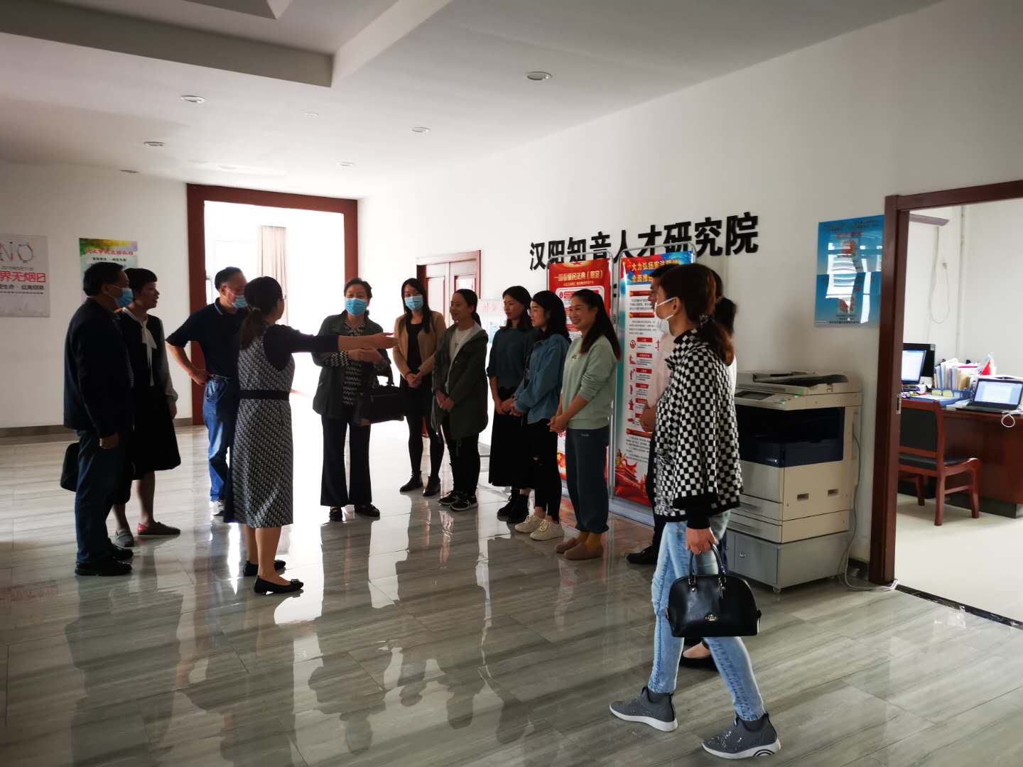 为落实人才培养方案,进一步加强学生实习管理,检查学生实习情况,加强与实习基地沟通合作,9月24日下午,马克思主义学院赵兴院长陪同校督导肖启庆、雷音来汉阳区人才服务中心走访实习基地,看望实习生,检查实习工作。区人才服务中心主任严俊、副主任禹妮带领大家参观了人才中心并在会议室座谈,实习生们就实习感受、体验与收获以及实习过程中的一些问题等向领导和老师做了汇报和反馈。