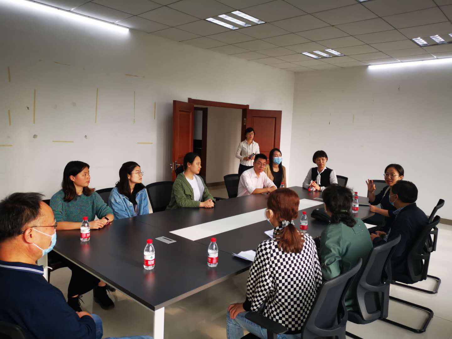 严主任介绍了人才中心的招才招商情况,感谢学校对区人才服务中心各项工作的大力支持,她谈到,马克思主义学院实习生在实习中工作态度踏实,在双方指导老师的带领下能够在短时间内独立担任各岗位主要工作任务,协助参与人才招聘、招商、办公室等工作。她希望在今后继续保持良好合作势头,推动合作向纵深发展。
